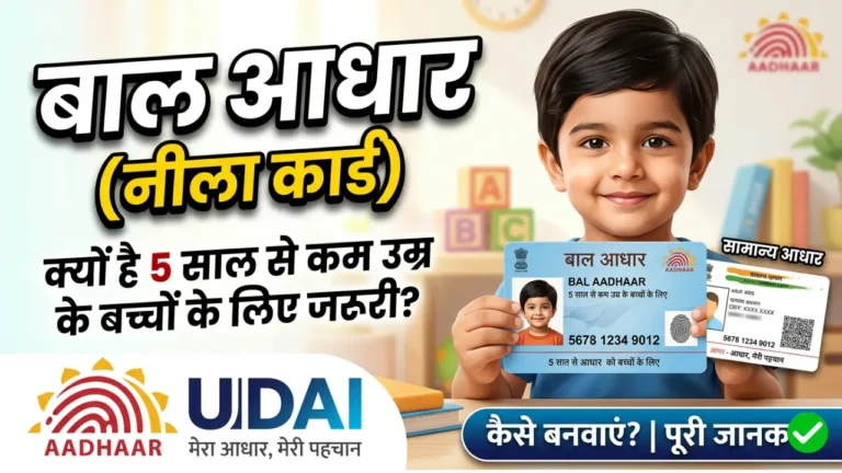 बाल आधार कार्ड नीले रंग का होता है, जो खासतौर पर 5 साल से कम उम्र के बच्चों के लिए …