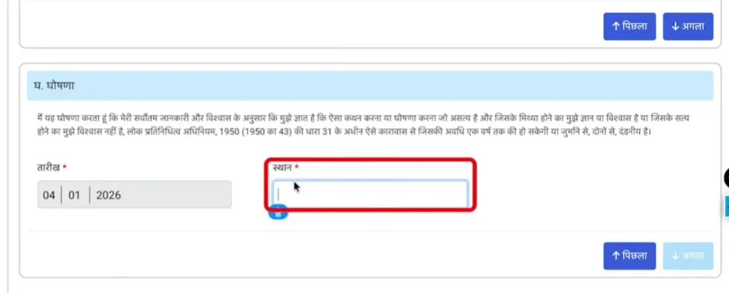 Step 8 :- फिर अगले पेज में आपको अपना स्थान यानी कि जिला का नाम दर्ज करके Next कर देना है।
