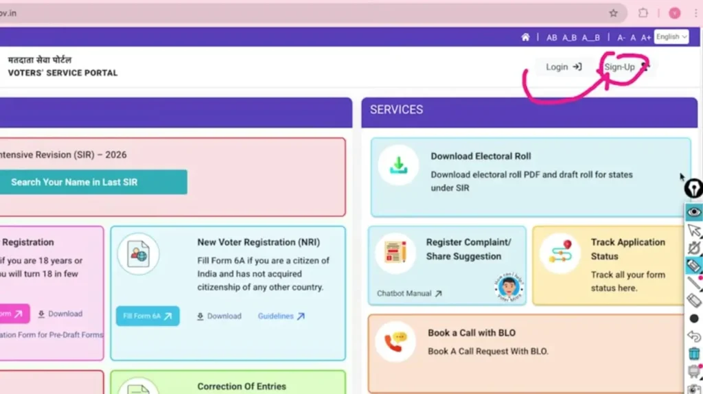 Step 2 :- ऑफिशल पोर्टल पर पहुंचते हैं आपको Sign-Up पर क्लिक करके अपने कुछ डिटेल्स फील करके Sign-Up कर लेना है क्योंकि बिना Sign-Up किया आप कुछ भी काम नहीं कर सकते हो।