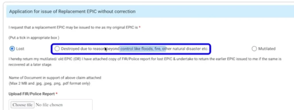 Step 7 :- फिर आप नेक्स्ट करते जाओगेतो लास्ट में पूछेगा कि आप किस वजह से नया PVC कार्ड ऑर्डर करना चाहते होजिसमें आपको सेकंड ऑप्शन पर सेलेक्ट करके Next कर देना है।