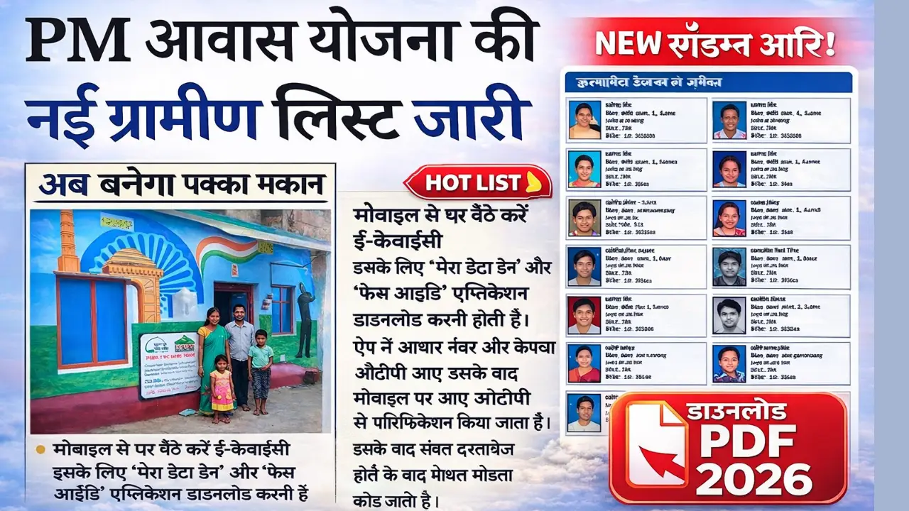 पीएम आवास योजना ग्रामीण सर्वे 2026 के तहत कई राज्यों में नई लाभार्थी सूची जारी की जा रही है। इस सूची में उन्हीं परिवारों के नाम शामिल किए जा रहे हैं, जो सरकार द्वारा तय की गई पात्रता शर्तों को पूरा करते हैं। ग्रामीण क्षेत्रों के लोग अब अपने गांव की सूची में नाम चेक कर सकते हैं और अगर नाम नहीं है तो सर्वे के दौरान आवेदन कर सकते हैं।