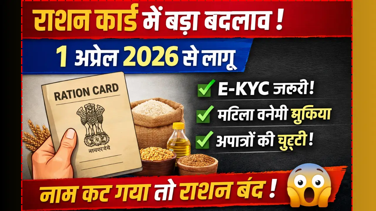 अगर आपके घर में राशन कार्ड के जरिए सरकारी अनाज मिलता है, तो यह जानकारी आपके लिए बहुत जरूरी है। सरकार 1 अप्रैल 2026 से राशन कार्ड व्यवस्था में बड़ा बदलाव लागू करने जा रही है। इस अभियान का उद्देश्य है कि जो लोग वास्तव में पात्र हैं, उन्हें ही लाभ मिले और जो अपात्र हैं, उनके नाम सूची से हटा दिए जाएं। इसलिए समय रहते जरूरी प्रक्रिया पूरी करना बेहद जरूरी है, नहीं तो आपका राशन बंद हो सकता है।